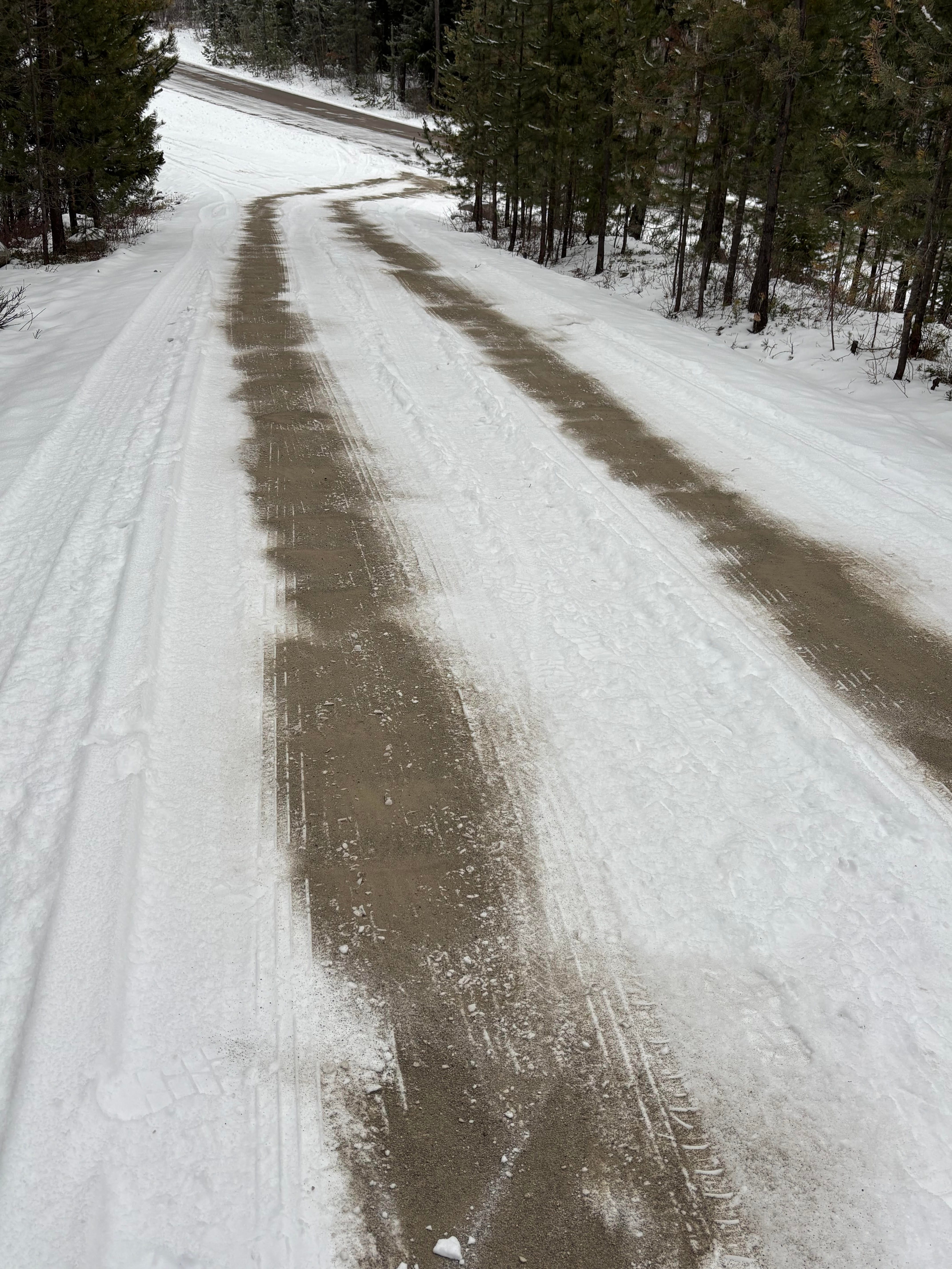 Not the whole thing. Just the steep part where the delivery truck might slip if I don’t give it some help. See, where I come from in California, when snow appeared in the forecast, everything shut down. Schools closed. Businesses shuttered. Everyone stayed home. But here in Montana, between Glacier National Park and the Bob Marshall Wilderness, things keep moving. People are used to cold and snow. The question is whether I am.